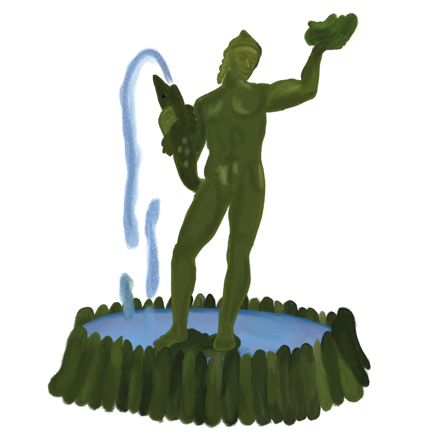 Med blicken mot Avenyn och ryggen mot konstmuseet står Poseidon, havsguden, som symbol för Göteborg. Skulpturen skapades av Carl Milles och avtäcktes 1931. Med sitt kraftfulla uttryck och sina bronsdetaljer har statyn blivit ett älskat riktmärke – både en samlingspunkt och ett fotoobjekt för besökare och lokalbor.